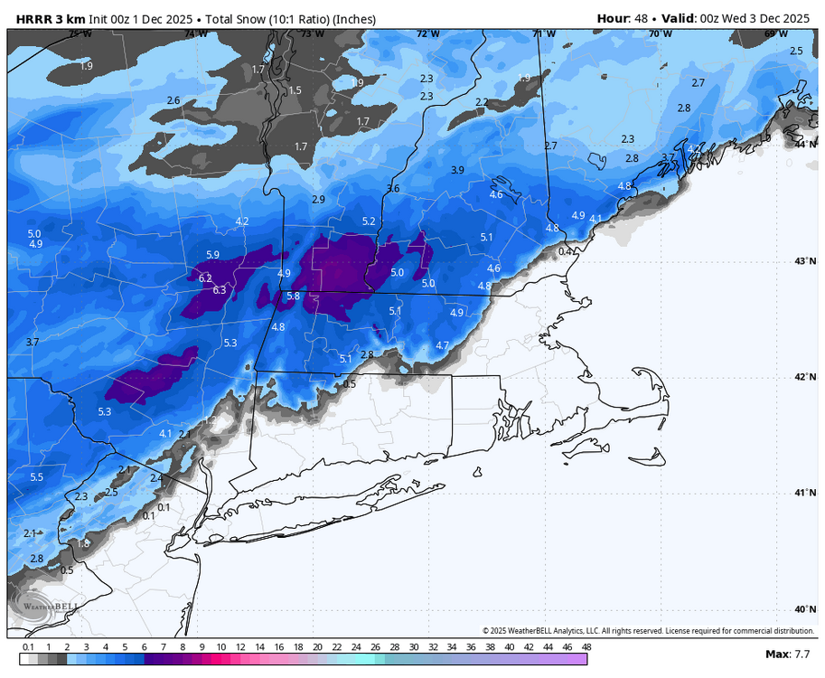Your area is probably the most interesting of anyone on the forum. That southern Middlesex County zone has been consistently modeled as the battle ground on all guidance. Like could certainly be 8-12" of paste, or like 3-4" of 4:1 slop. -