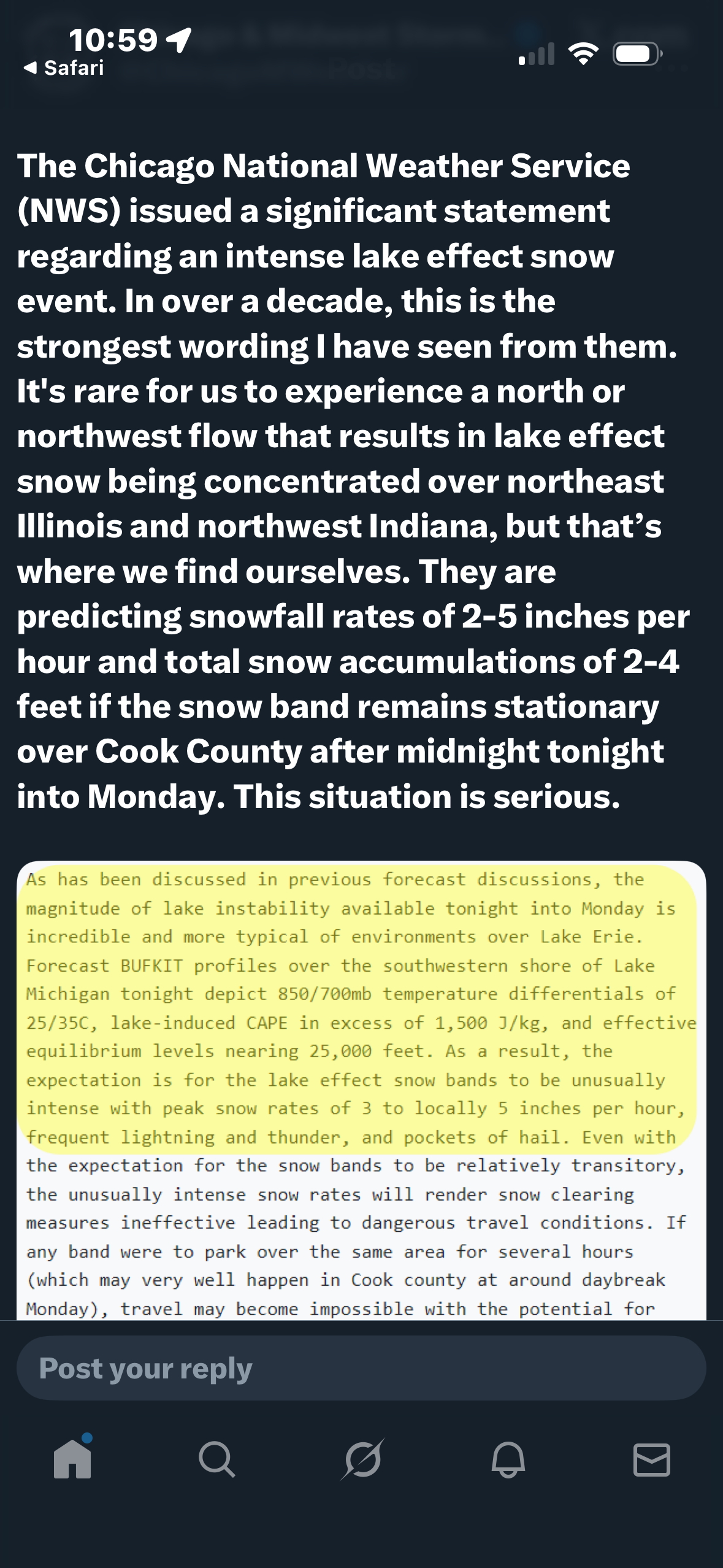 Crazy for so early in the season Including the cities of Chicago, Peotone, Northbrook, Crete, Evanston, Lemont, Park Forest, Schaumburg, Cicero, Oak Park, La Grange, Des Plaines, Oak Forest, Oak Lawn, Calumet City, Beecher, Palatine, and Orland Park 224 AM CST Sun Nov 9 2025 ...WINTER STORM WARNING IN EFFECT FROM 9 PM THIS EVENING TO NOON CST MONDAY... * WHAT...Dangerous to impossible travel conditions due to intense lake effect snow expected. Snow rates in excess of 3 inches per hour, localized total snow accumulations of 12 to 18 inches, and northerly wind gusts in excess of 30 mph are expected.