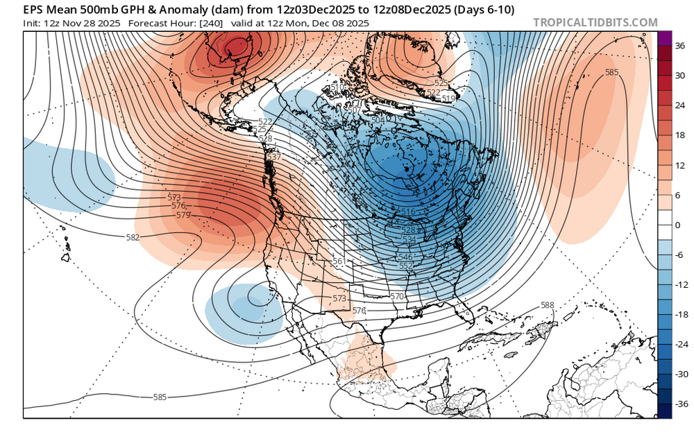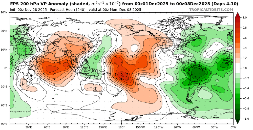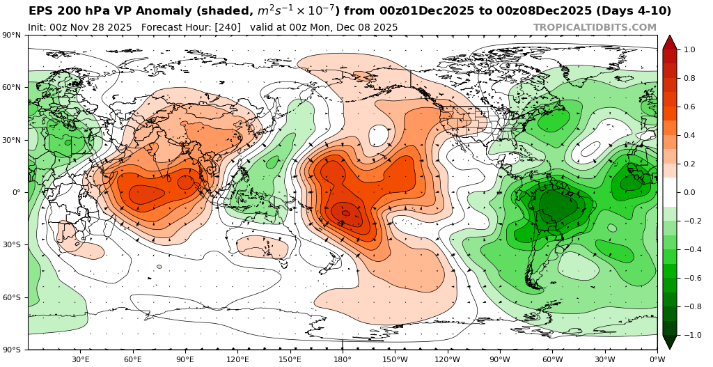 Split forcing between the Maritime Continent and the Western Hemisphere appears to be causing an interference pattern resembling a phase 6 in early December. It could also be why the models have been showing so much volatility between runs over the last week as we head into December. A Northeast Pacific +TNH with a a cold upper low centered near Hudson Bay more closely resembles a phase 6 composite. So trying to guess what composite or pattern we end up with in mid to late December is anyone’s guess at this point. We will just have to let things play out next few weeks to see which area of forcing eventually wins out.