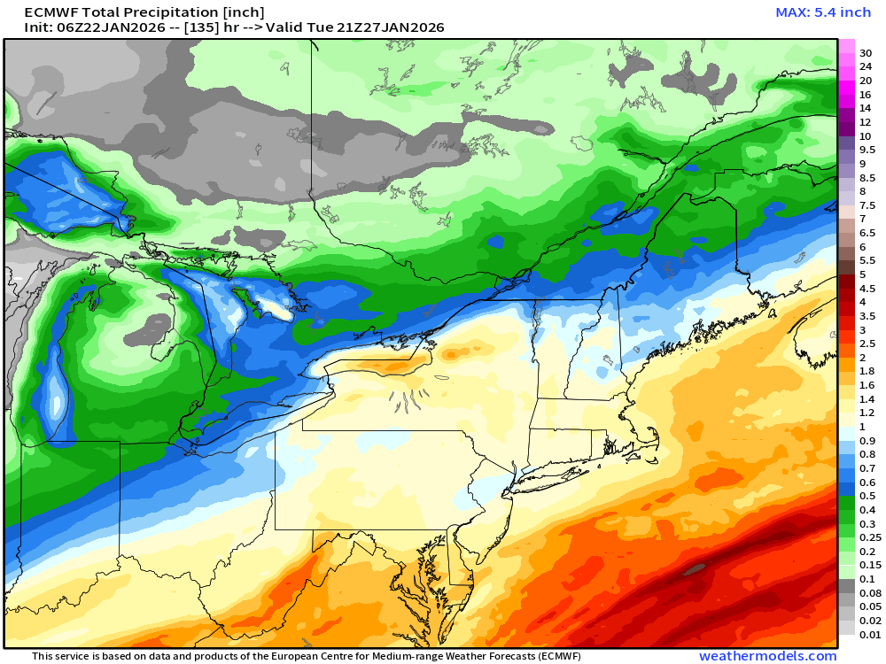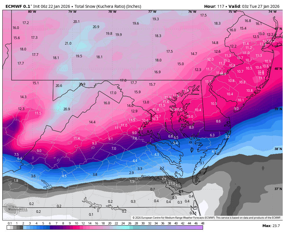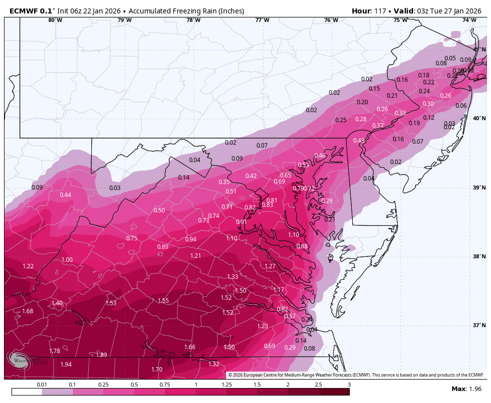 I’m he ICON is the worst model, so not worried whatever it shows. Euro & GFS & Euro AI along with their ensembles all show us getting buried. If the southern tier mixes at the end, it would likely be after a foot is on the ground. -