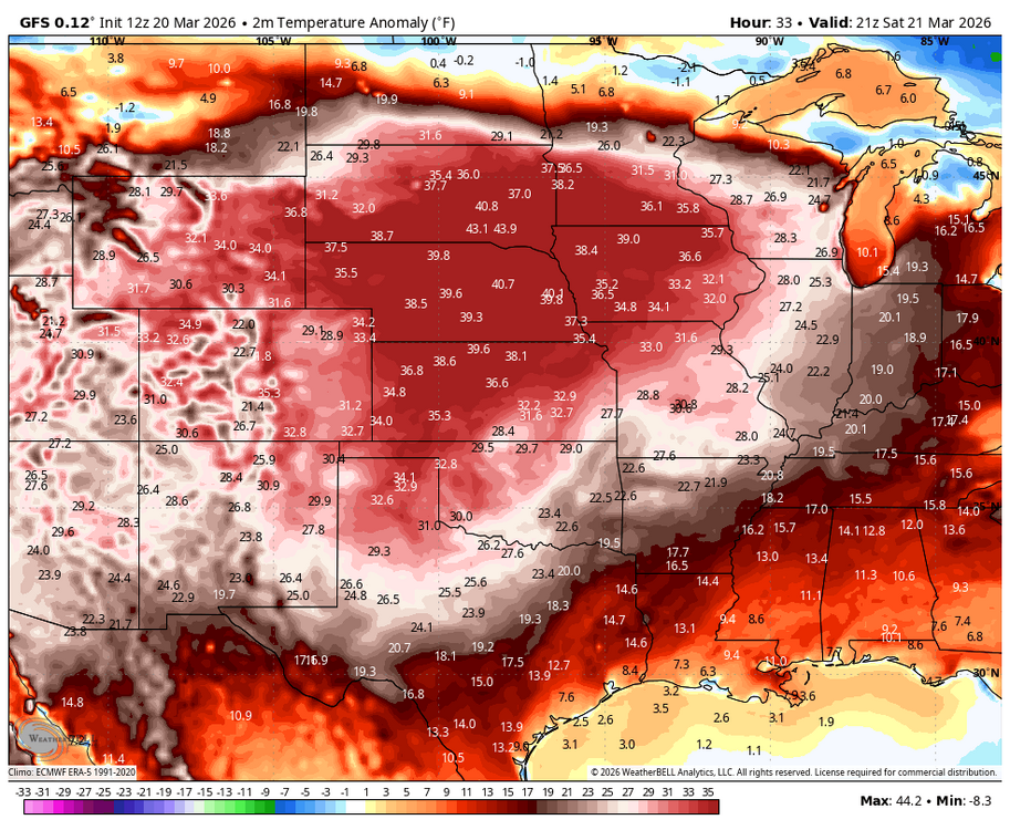 10. The cold pattern in the Eastern US feels like it's already broken this month. Many places are several degrees above average for March.