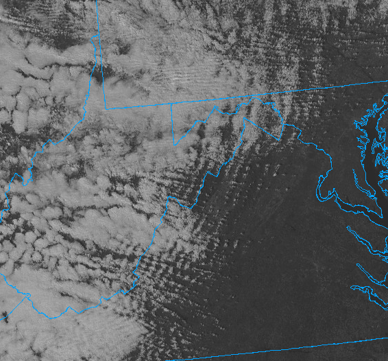 I consider the dotted lines of clouds from NNE to SSW today to be gravity wave clouds from terrain induced rising and falling air. I realize this doesn't help if you aren't currently in the western areas, but look for something similar in the future. Lenticular is going to be really tough around here, especially outside of isolated thunderstorm season (for pileus).