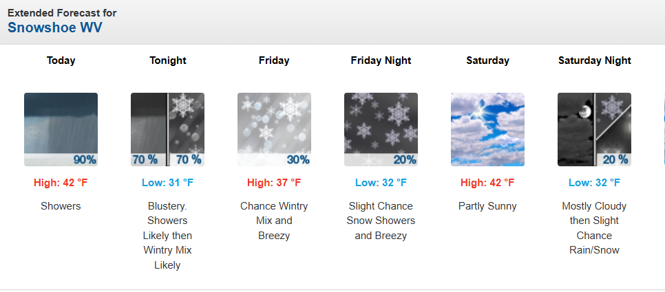 Headed to Cass, WV to ride the train tomorrow morning, stepsisters B-day and she wanted to ride the train and see leaf color, lol. Doing the one along the river (hoping for that bit of remaining color) but with the forecast DEFINITELY riding up to 'Shoe after to see the first snows of the season!