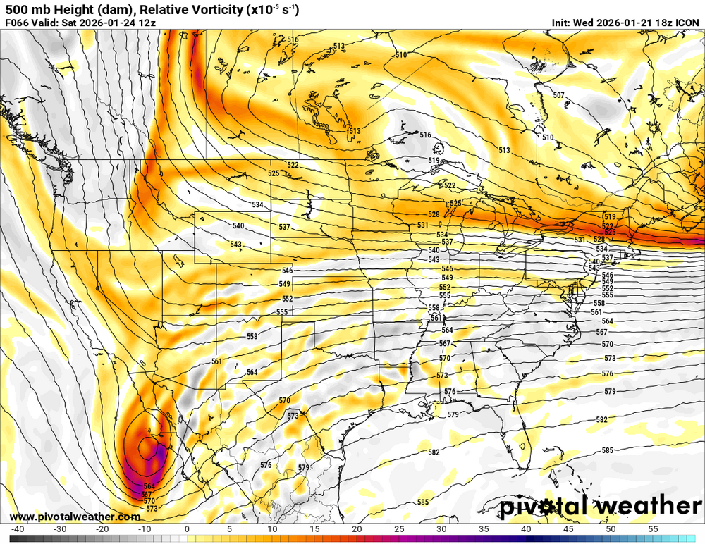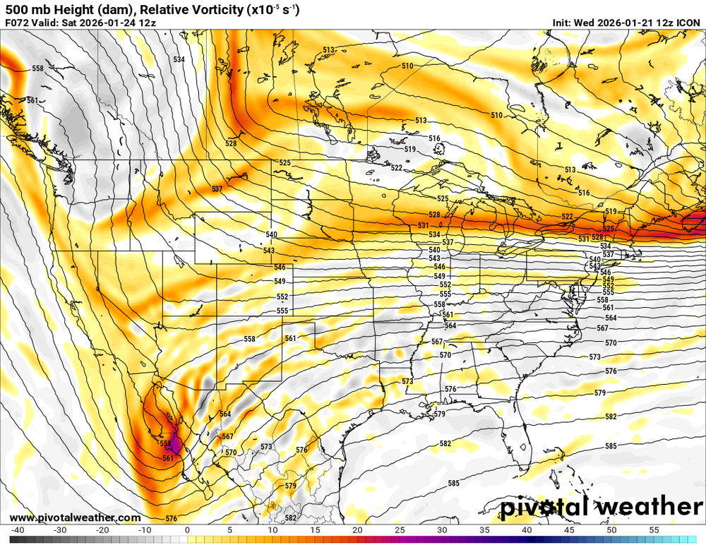 I'll let someone more qualified than me comment on meaning, but here's ICON 18z (top) versus 12z (bottom). Valid Saturday 12z. Baja wave looks more organized and more positively tilted. Northern stream energy has a different position too