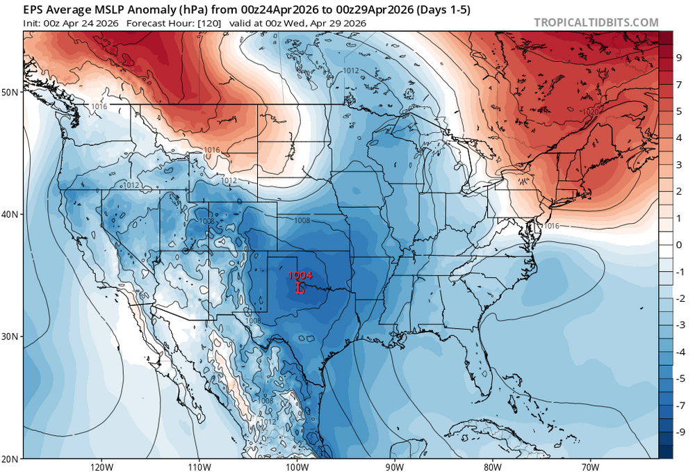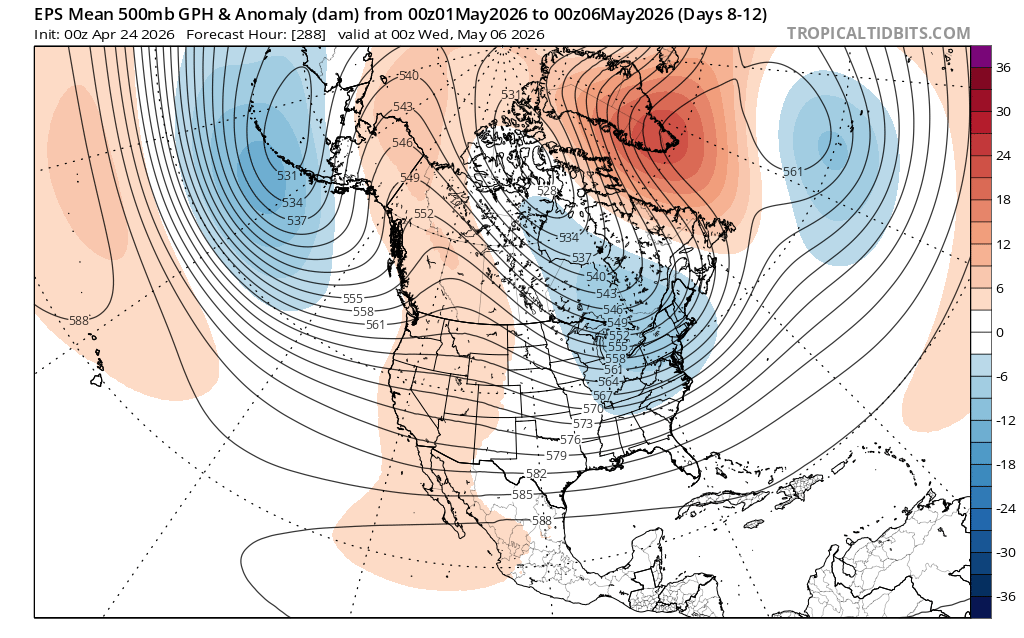 2. Classic onshore flow pattern with waves of low pressure bringing rainfall as they move through. Tomorrow could have afternoon temperatures struggling to get out of the low 40s with clouds and rain. Blocking pattern set to continue right into May.