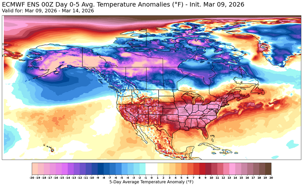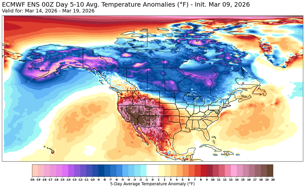 Generally looks like the magnitude of any colder weather during mid to later March will be of a weaker magnitude than the warmth this week.
