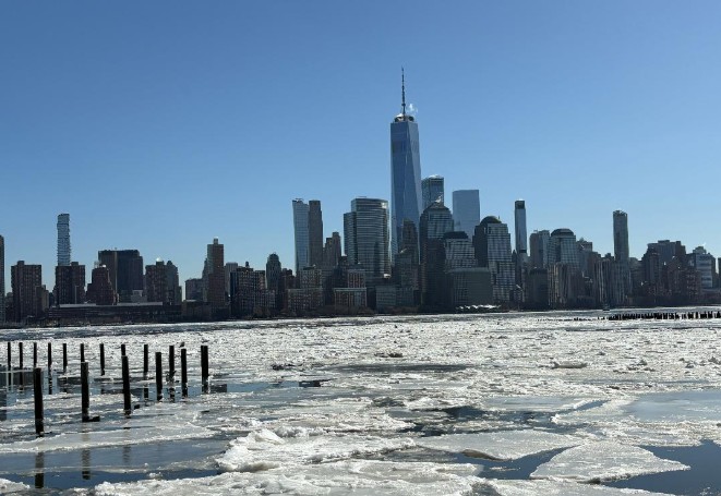 Took this pic from Jersey City looking across the Hudson. Actually been checking over the past week and was disappointed to see not much ice. But today there was, and tomorrow will probably look better. -