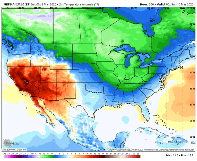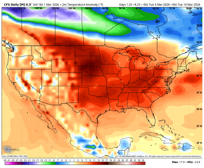 The American Storm @BigJoeBastardi · 2m May in March followed by January in March. As I posted a week ago, in this pattern. Beware the ides of March -