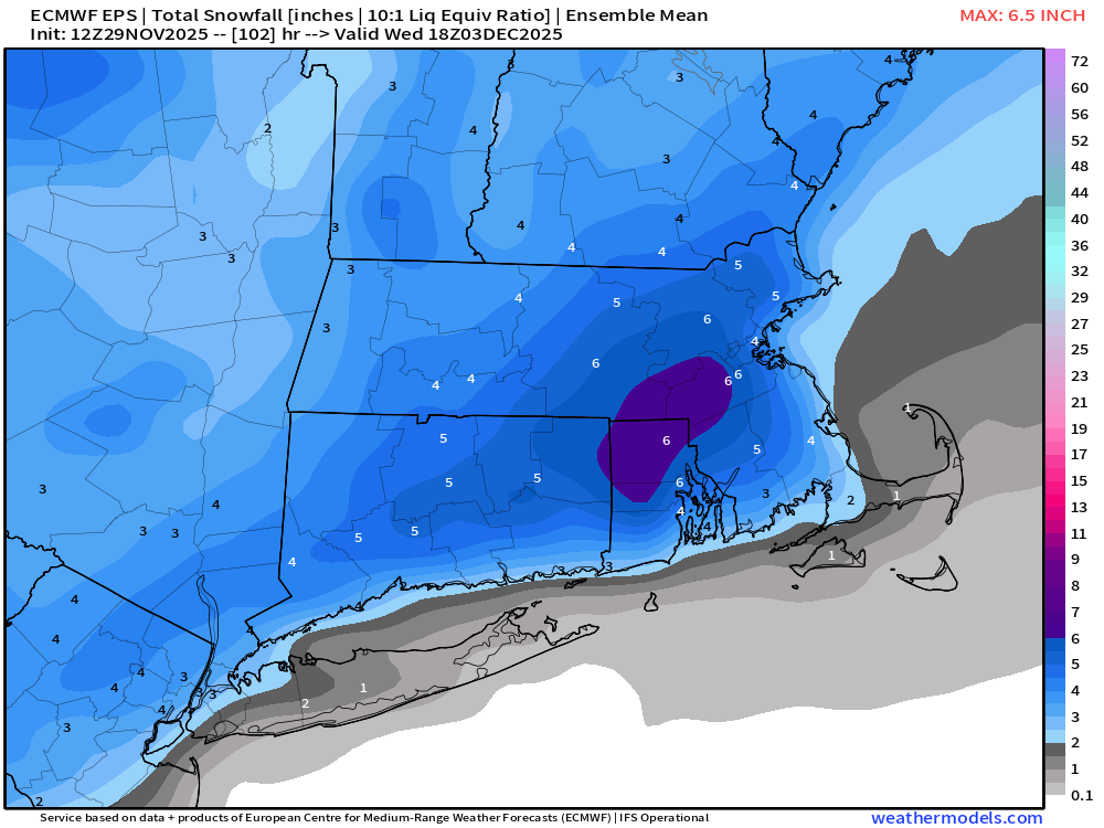 You'd have to believe the Euro has more data and later input time... and more reliable (at least I do). I am sort of surprised it doesn't amp. ECAI does amp and plenty of snow interior. I'll be watching AI temps at 18z and 00z//3 carefully for trends on AI. Banding of wet snow could be a problem for some tree branches just s of I84 in nw NJ sw CT.