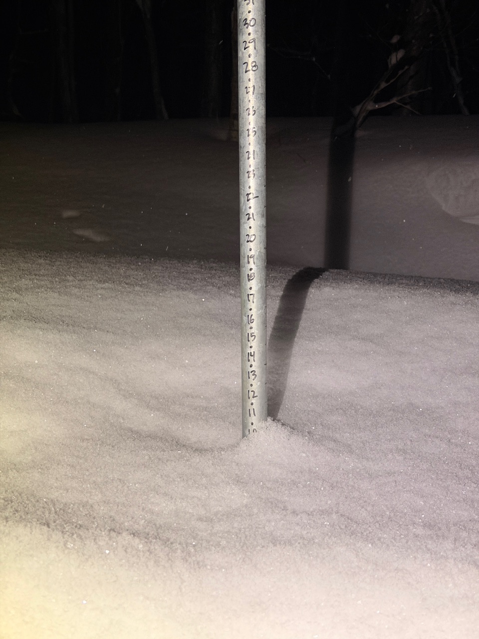 5am Barnes Camp pics… 10” new and depth went 32” to 42”. It is deep at 1500ft for snowpack by the Barnes Camp boardwalk.