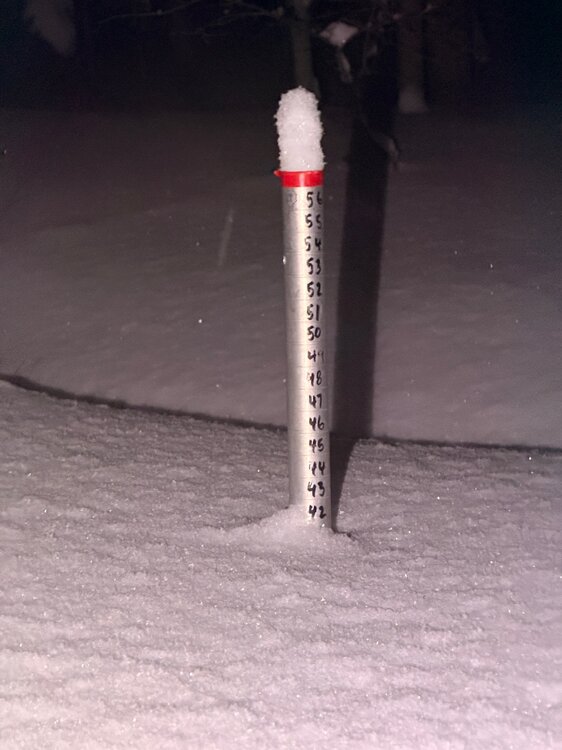 9" here of absolute fluff. A nick stack of some of the lightest snow I've seen fall here at my house. Snow has filled back in and at this ratio should have no trouble hitting the 3-6" in the forecast.