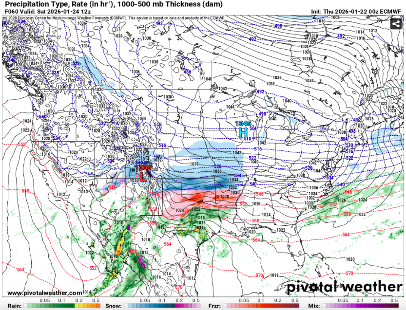 Having the subtropical jet throwing moisture straight at a 1045 HP in southern Wisconsin and ending up with 0 inches of snow in the valley is like the weather equivalent of throwing a pick six on 1st and goal from the 1... we're just sitting there watching the warm nose run it back for a touchdown. The HP actually retreating northwest between hours 60 and 66 is a nice touch, like the QB chasing down the warm nose and giving up, lol