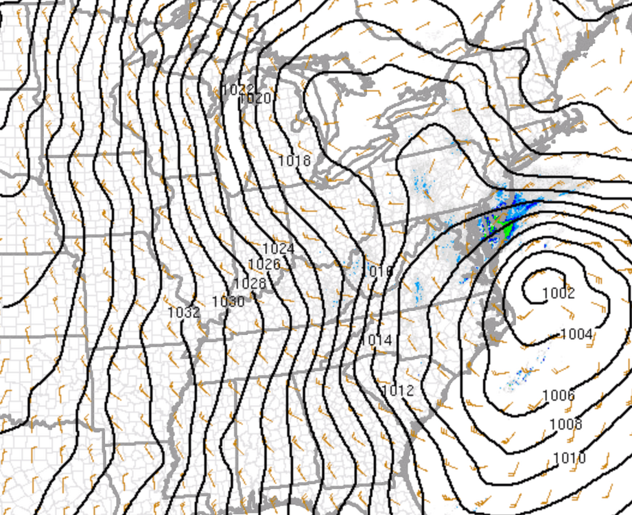 There’s a lot of people that don’t understand how different this storm will be as modeled when compared to other coastal storms that provided a lot of snow to the area. I am telling family out on LI to think of this as a hurricane that brings snow. The modeled intensity speaks for itself. I also introduced them to a new word for their vocabulary- Bombogenesis. The map below with the expected winds off the latest HRRR run speaks for itself. And yes it does have an eye.
