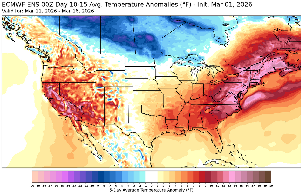 4. Probably just an AN tendency marred by occasional frontal positions ...typically for March. Cold enthusiasts pimping their impressions of the marring times, while heat enthusiasts cherry pick warm afternoon 2-meter outlooks that are beyond D7 lol. At the end of the two weeks, neither side has more than a shit eating grin to show for it.