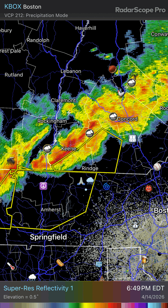 Not that anyone cares but this backing boundary is through Ayer now... So far, it's been a 5-7 F knock back but it doesn't appear to be aggressive. Seeing a lot of 72's persisting E of here. Won't matter on the day's numbers. We tend to get our high for the day about now anyway. It was 82. Nothing like a +22F climo smash