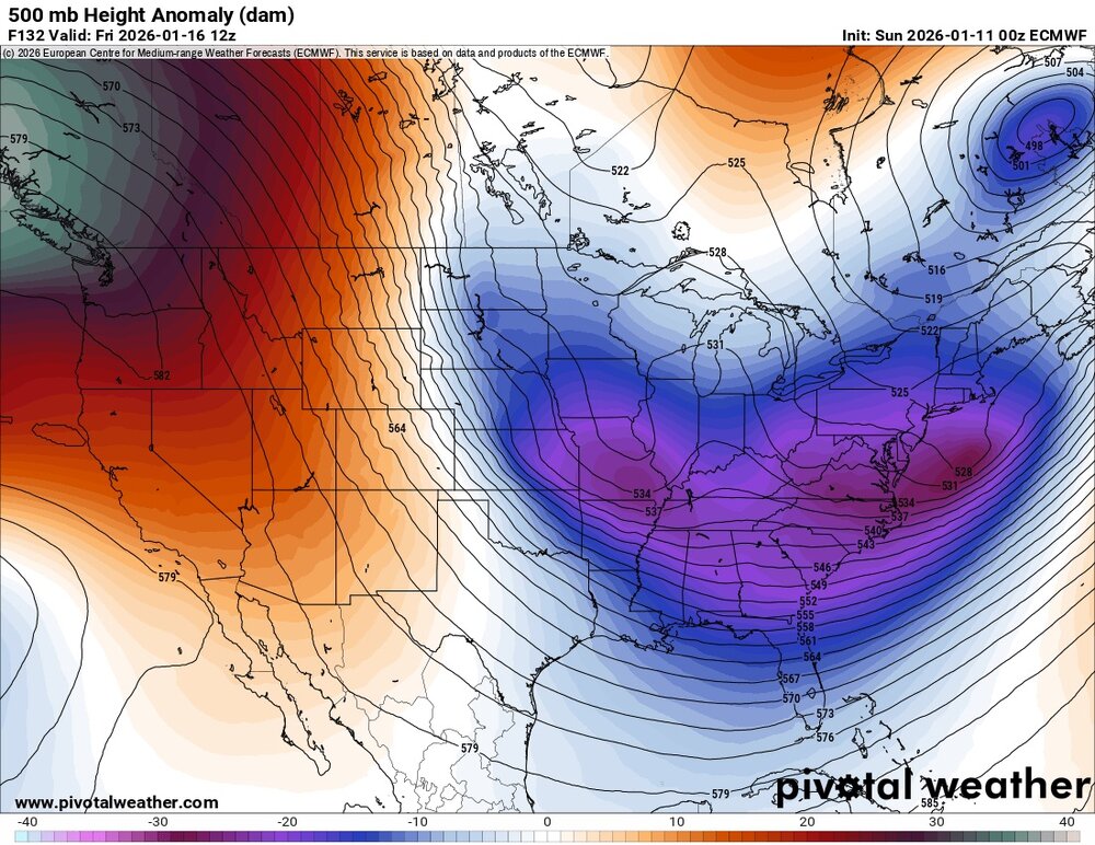 I haven't followed the entire thread, so they may be content here already mentioned. This is a very complex forecast, and among the weirdest ones I can recall, or should I say challenging. This could be an odd duck event (CoastalWx immediately thinks of March 7-8, 2013)! It's not often you have two strong s/w troughs so close together in the East vying for "who wins!" And the eventual sensible wx outcome in terms of snowfall DCA-BOS may be something that is not apparent until it actually occurs, w/ some areas doing well and some areas not so well. CoastalWx will immediately go, "great, just another chance I get STIFFED for snow in Weymouth, just like I have been a lot this year!" In the broad pix across NAMR, it looks quite good. But as usual, it's all in the details. First, the good: 1) Mean trough position is solid in the E w/ axis good for a "CoastalWx Special." 2) Great amplified ridge western U.S. 3) A thing the earlier runs did not have is upstream ridging/blocking in the NATL. Now it does. It's not a strong block, but decent height anomalies are there. Downstream is just as important as upstream aloft! 4) 00z GFS/ECMWF/UKMET all show a quite strong closed 500 low well S either over the Carolinas or southern Mid-Atl. Something like that crossing the coast should result in decent sfc cyclogenesis. The UKMET makes the low go sharply negative, while the GFS/ECMWF keep it more neutral tilt. Now for the "problems": 1) The upstream kicker *right* behind it. Not good. And you can see on the 00z ECMWF 120 to 132, how strongly the kicker 500 trough deepens (120 and 132 hr ECMWF 500 attached). This messes w/ the lead 500 trough and starts to dampen it. This is not how KU snowstorms occur. 2) I don't like the moderately strong closed 500 low over central Quebec. It limits the s/w ridging ahead of the lead 500 trough. This should be over Hudson's Bay for the best weenie event. 3) The western U.S. ridge axis is a bit too far W for my liking, so the wavelengths broader than ideal. So you see, a truly complex forecast, much higher than usual for sensible wx specifics! Some musings/caveats: 1) Will the kicker trough try to "dumbbell" the lead trough and its sfc low more N? 2) The intense 500 low crossing the coast before it starts to dampen, how fast will the cyclogenesis be? How long will it stay tight/consolidated before elongation, if at all? 3) Just b/c 500 feature dampens, does not mean below that weakens much or at all. You can have a beast of a 850 and sfc low and not much more than a "dent" at 500 (Feb 1983 KU storm comes to mind). 4) Snowfall gaps or spotty. Look at 00z GFS, decent snow over the Mid-Atl, then a big gap PHL-NYC, and eastern New England does half-decent. GFS snowfall has the same idea and the UKMET to a lesser extent. Not the "smooth" snow event CoastalWx has been looking for (if Cape Cod gets crushed and Weymouth screwed - I can hear, "I'M DONE!!!" Thoughts?