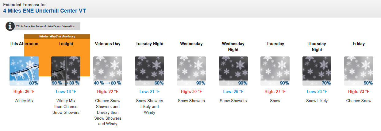 Hit 36.3 around noon (when sun poked out for about 10 minutes) and been dropping since. Currently 33.8/21.4 with clouds and a few flakes still flying around on NW winds 9 gusting to 22 mph. Feels like winter! Nice hot fire in the stove.