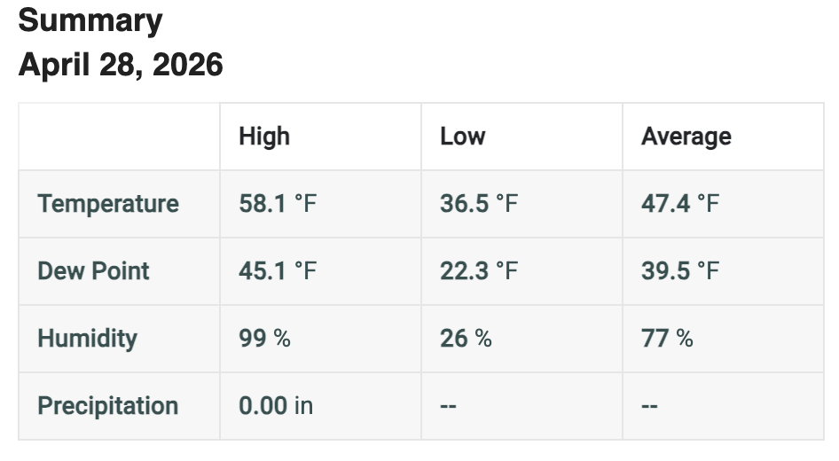 Sunny 60s here with the trout lilies beginning to bloom. Snow total for 25-26 (barring something very unusual) is 6.8". That's 1.8" BN, currently the closest to my average in 28 snow seasons, with only 2012-13 (90.4", 2.0" AN) being close.
