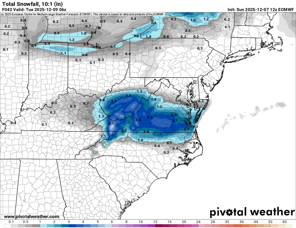OK, so let's skip over the next 5-6 days and go right to the monster Christmas Eve winter storm. Isn't 'perfect' but that is plenty close enough for me. Only need it to hold for about 60 more runs. 42 straight hours of wintry precip: -