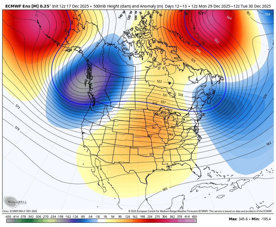 12Z GEFS strong -NAO that starts in just 5 days (12/22) and is the strongest -NAO for days 5-16 averaged out on any GEFS run back to at least Oct 31st: Compare this to the 0Z 12/12/25 run: 12/22-28 were 0 to +0.5 instead of -1 to -2