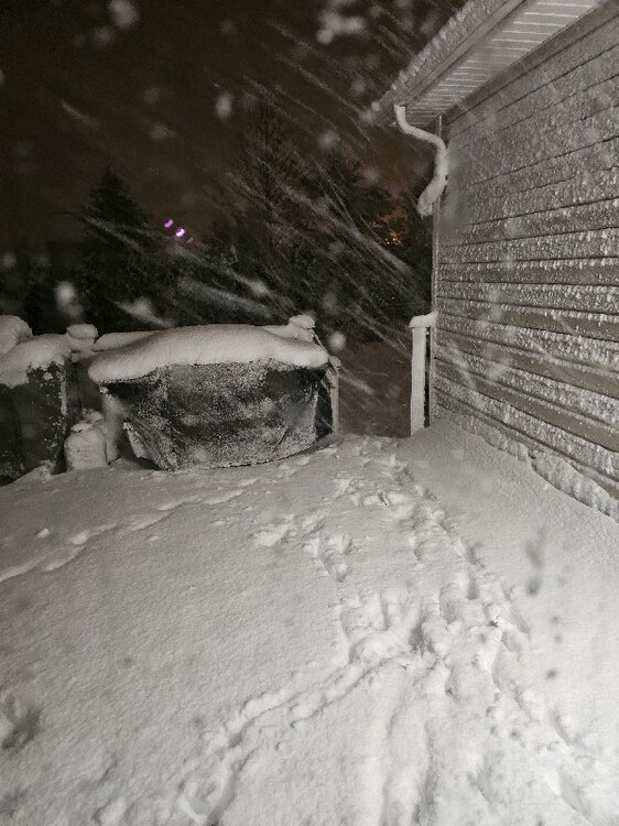 Moderate snow temp 31F here in E CT with about an 1” on the ground. State roads treated were wet and just starting to coat; untreated town roads already covered. Let’s see what happens overnight -