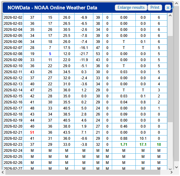 I have checked full day calendar day 23rd climate reports and with one very minor exception the somewhat debatable numbers are confirmed. Annoyingly, EWR added 0.1" to their total. But NYC remains 19.7" despite potential for 1-2" additional after the early 1 p.m. report. I don't yet have any explanation for EWR showing up as 27.1" in PNS when their two daily amounts are 8.1 and 17.1 (previously 17.0). I will edit the table for those miniscule differentials for EWR. Doubt that it makes much difference to any rankings. Earlier in the process, I had hudsonvalley21 slightly ahead of MJ0812 because of the higher EWR estimate. There were other changes after that, at some higher value than 27" hudsonvalley21 would have a lower total squared error being a bit closer to any high value. That's why that part changed. I am going to check the CF6 data which is usually published around 5 a.m. for NYC area stations, to see if anything changes there -- the CF6 document was stated to be the ultimate guide to scoring this contest. Will either edit in a "no changes found" or tell you what changes I find. Later edit -- no changes to any contest snowfall values in CF6 tables. Remains 19.7 _ 22.5 _ 29.1 _ 20.1 _ 25.2 for two day storm totals.