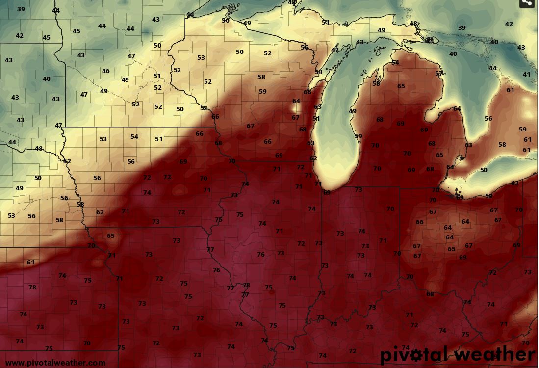 He’s still conflicted. He’s still just trying to pin days of 70s on those of us saying warmth is coming.