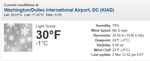 The dewpoint is in the single digits in northeast Maryland. The wet bulb temperature is below freezing for just about all of Maryland. Pretty impressive for March. -