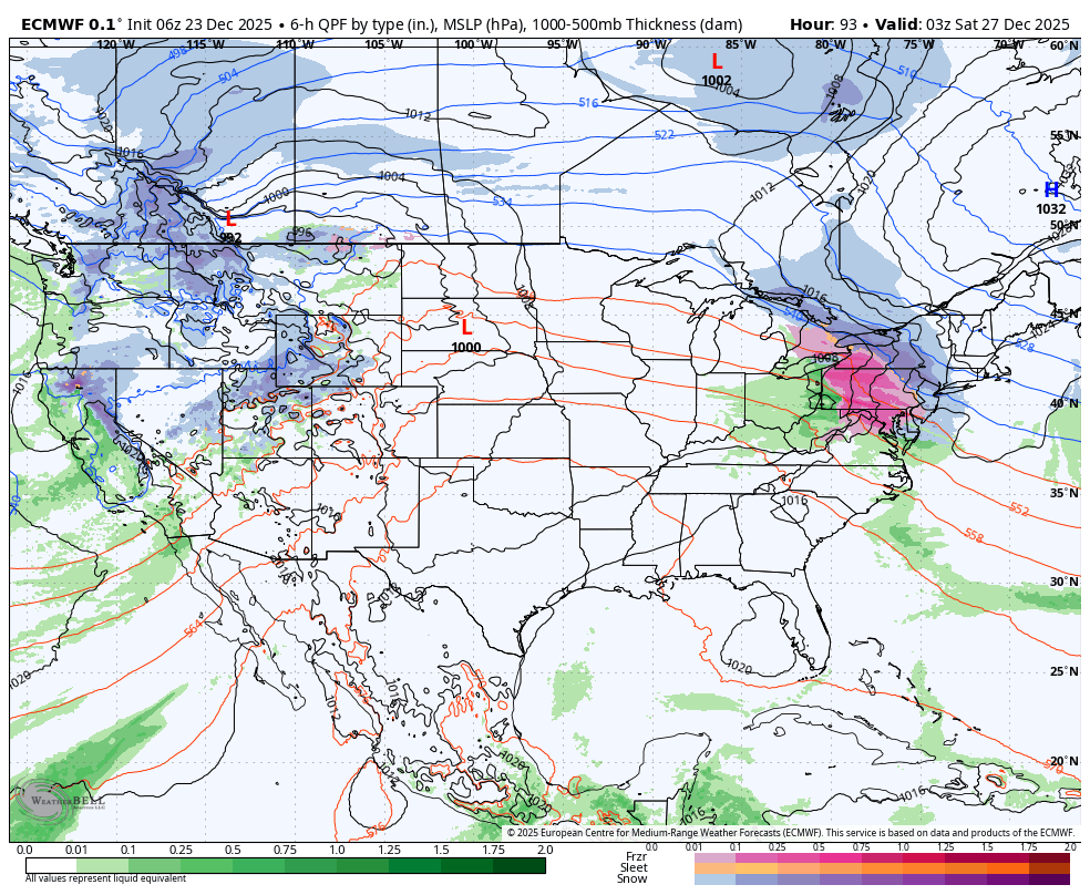 Two, back-2-back cold fronts appear possible between Dec 28 and Jan4. If recent model history trends hold...that second front might be colder than what is modeled(well, except for the GDPS which brought it). The Canadian is likely too cold, but it looks like it might be about to score the coup for the Dec 28th run - most models have trended colder and if memory serves me correctly...it caught that first cold front before any other model(maybe the Euro Weeklies as well). Will models back off the intensity of the cold like they did in early December? I keep asking myself that, and then I remember this is a late December and early January air mass which is BN over western Canada. It is possible that the fronts are under modeled outside of seven days. The Music City Bowl is trending colder....oof. -