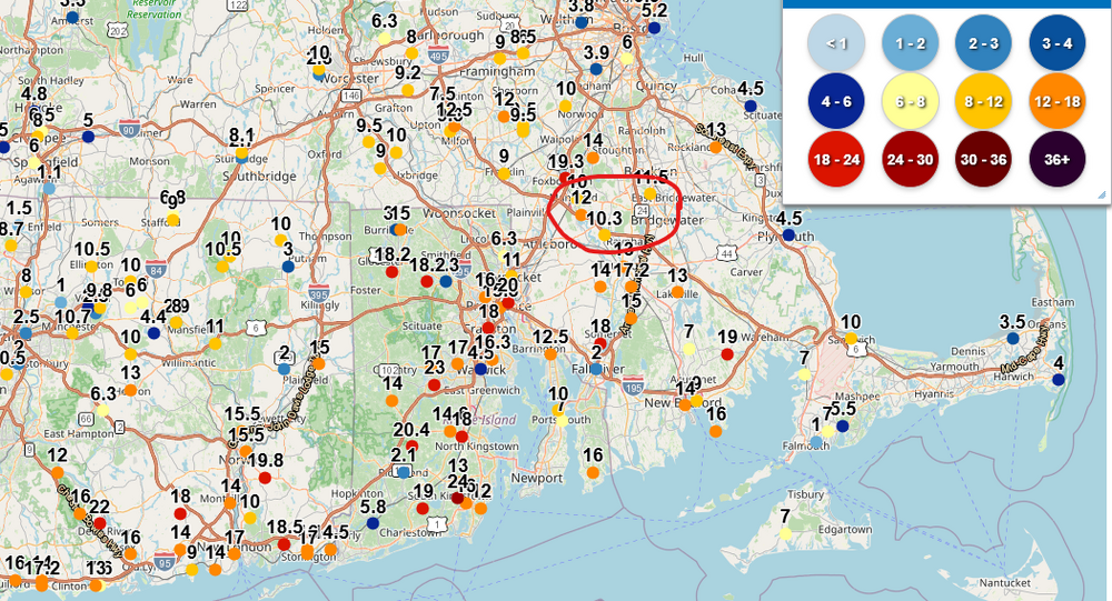 Where are you? I’m in Macungie and only have 1 inch at this point.