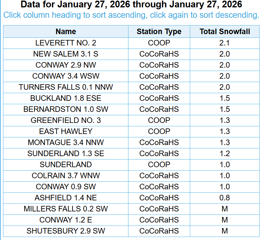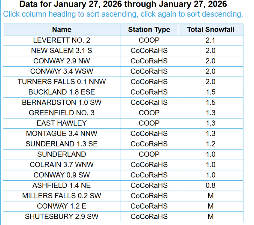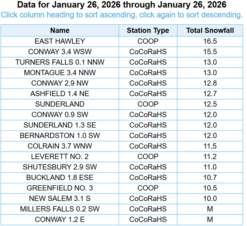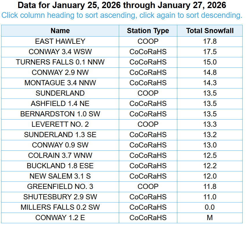 In Franklin you mean? Yeah i was thinking about that when i was putting the map together. They do include both days from the cocorahs and COOP reporters, they measure every day and it included Jan 25-27th, i checked to be sure. I dont just go off the PNS i looked at the actual cocorahs and coop final numbers. There was a bit of a hole toward the end of the main part of the storm you can see on radar and most of Franklin missed that main band that developed on Monday, at least the best of it. I attached a full radar loop below. If it was just one or two reports id toss em but there were about a dozen 11-13.5ish reports around there. The only reports that were higher than 15 were in western Franklin from East Hawley and SW Conway. I decided to include them based on that, i do think about these things when putting a map together, sometimes i gotta trust the reports since i dont live there and when theres like 12 all around the same number, then ill include them. Individual days -