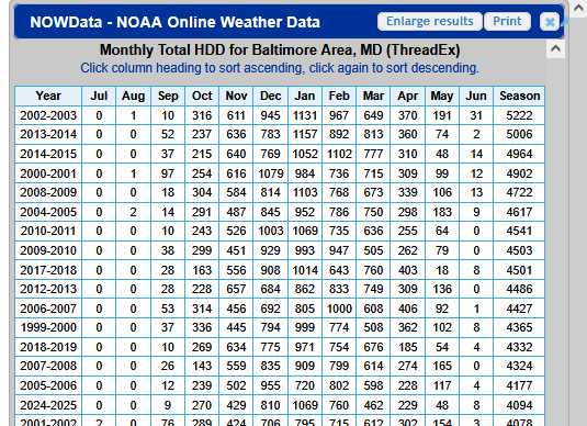 Lately I've been looking at HDD data for overall sensible cold. By this method January 2025 was 4th coldest January of this century. However, not the case with full year, June-July. Here's our coldest years: These number look about right to me, and 2002-2003 is 4th coldest all time for Balto, (since 1872)