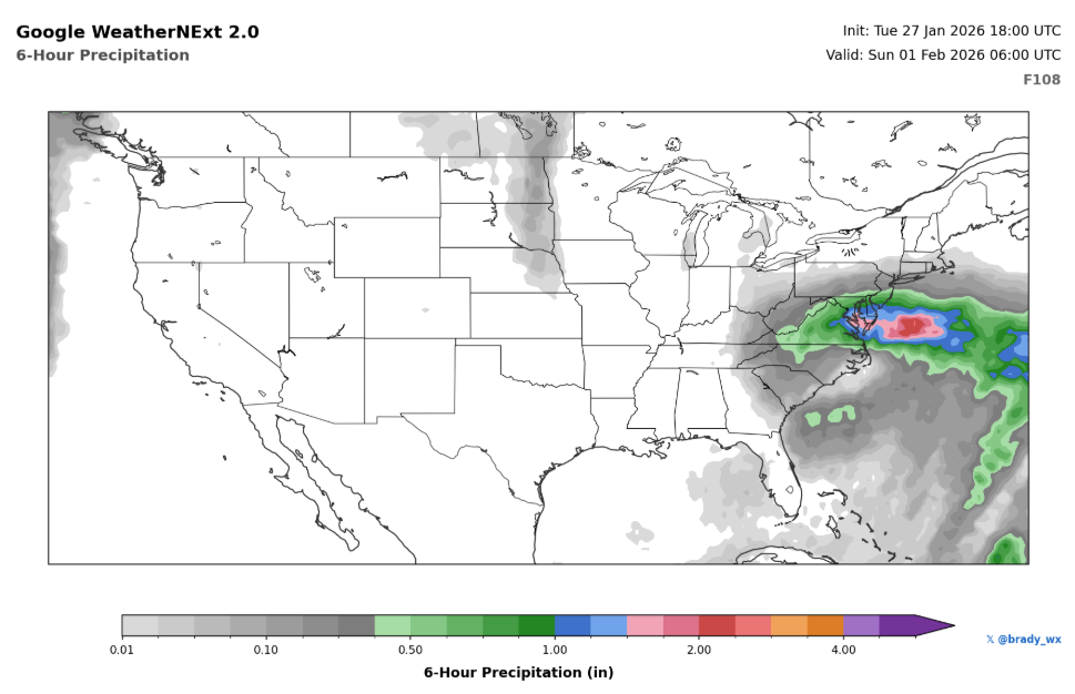 Possible coastal storm centered on Feb 1 2026.