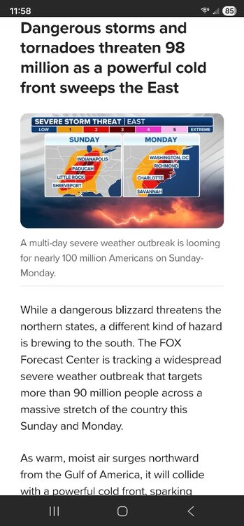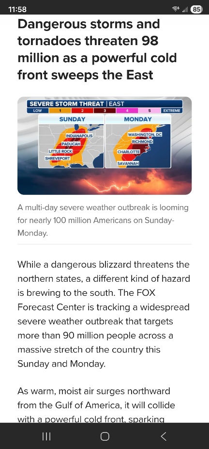 Just saw the reporting of blizzard going to hit the Midwest Sunday with sever weather along the mid Atlantic