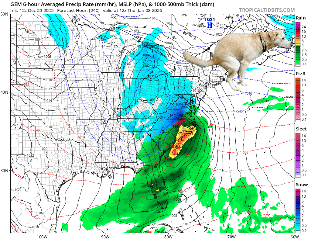 RE: 12z Canadian Move the antedecent high pressure just 200-400 miles west and that storm at HR 240 is a KU event.