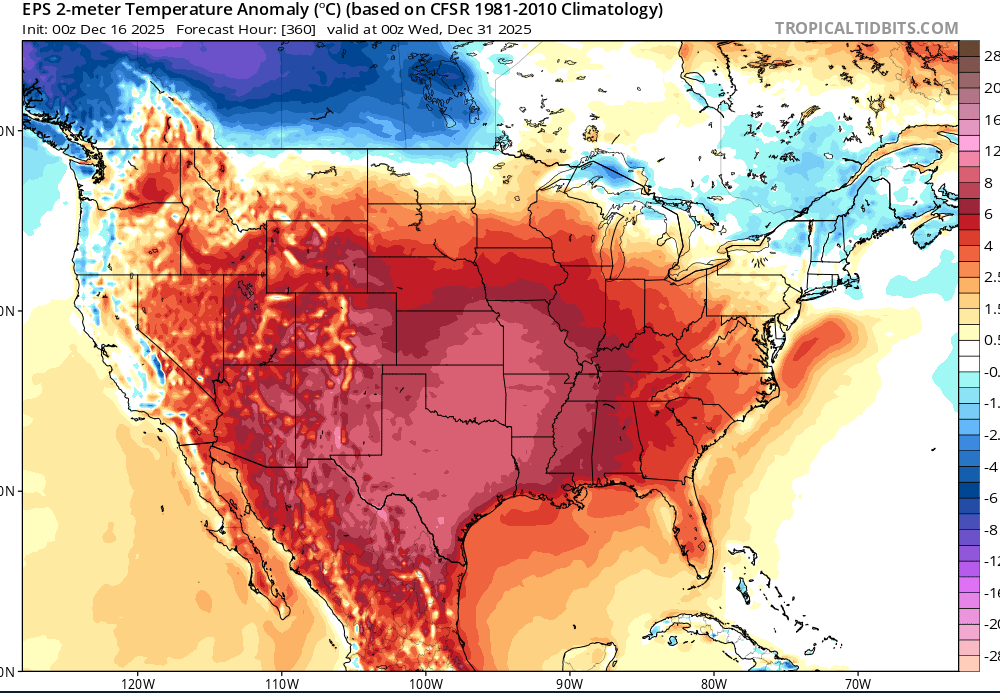 COLDEST DECEMBER 1-15 SINCE 2005 Every single day of December 2025 has been cooler than average so far. The last day with above normal temperatures was November 26th (almost 3 weeks ago)! Fear not - the warm up starts today & continues through Thursday. -