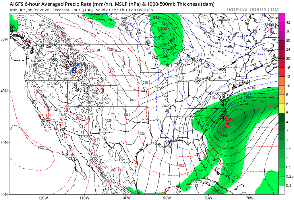 AIGFS has more precp with a weaker low further offshore. This should be what the GFS shows for tomorrow. And yes, if this happens its a big storm for SEVAand RIC