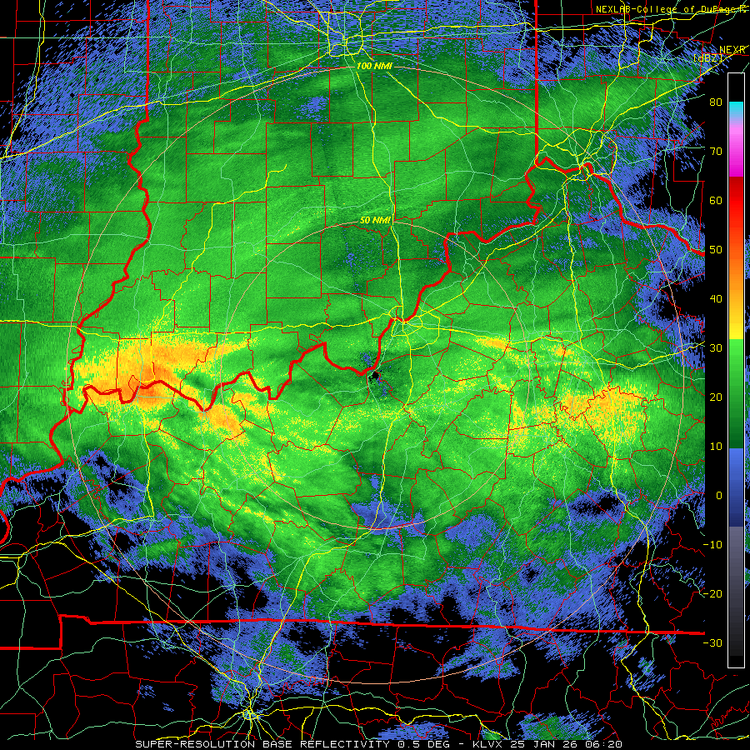 30-35 dBZ returns coming out of southern Ohio and W.V. Probably 1.5-2.0” rates for some folks later on. -