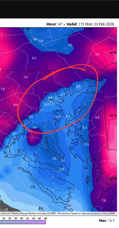 Busy day and getting caught up. Lot of talk about the low hugging the coast or going west. My non expert observation is that the reason we don't get slammed further west/ south is because the low intensifies parallel to the Delmarva rather than further south say off of Norfolk. If the storm intensifies faster than forecast and hugs the coast then the NW burbs could get heavier snow. Also, can someone better explain the IVT? I still don't get it. Thanks. -