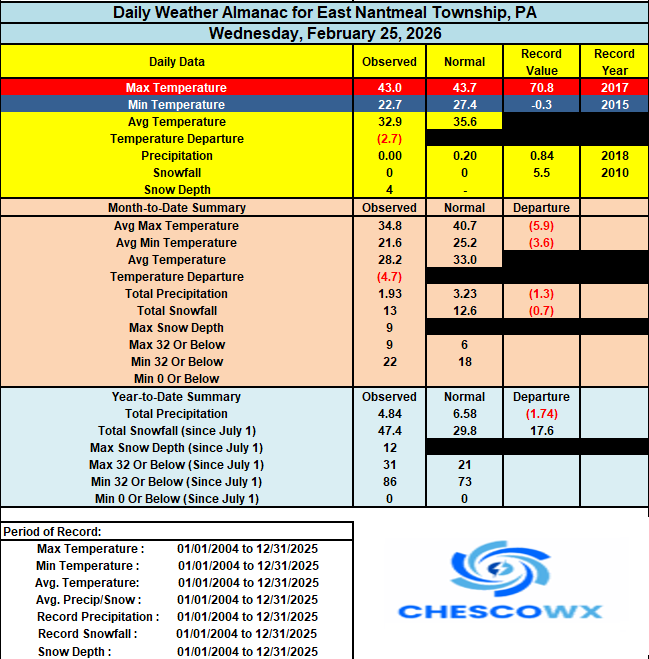 Central PA Winter 25/26 Discussion and Obs