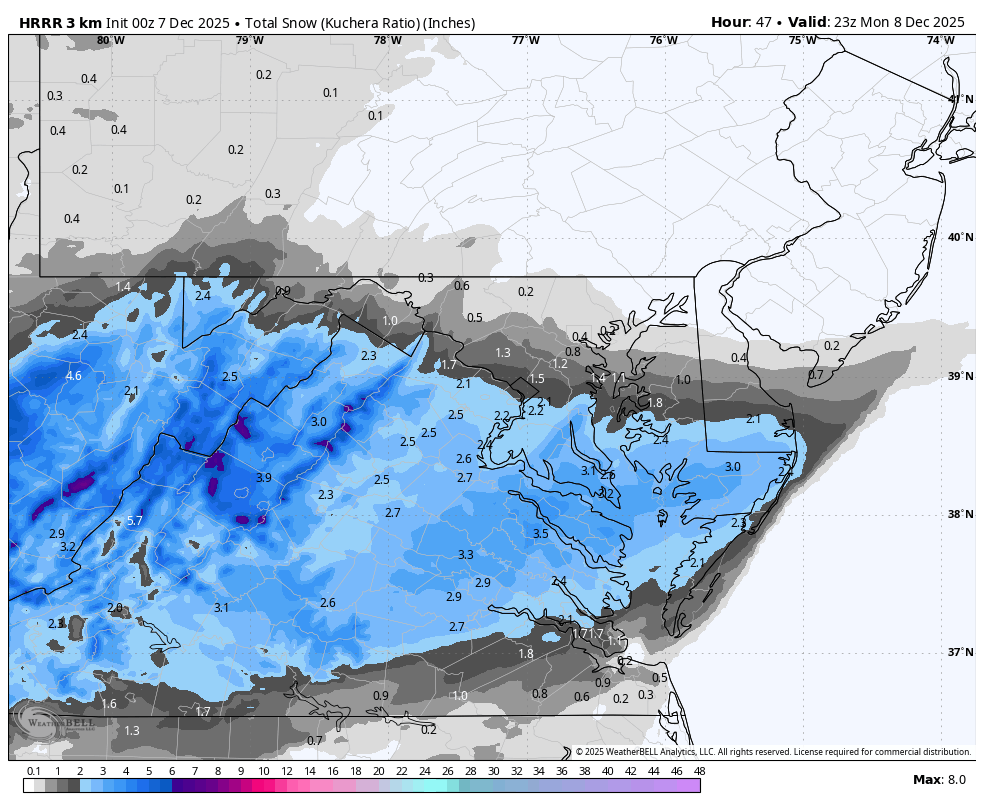 Reviewing my event snowfall forecast and I think I did pretty well. Only real miss was underestimating how far east the northern extent of the 2-4 would reach as it ended up getting close to Cville itself.