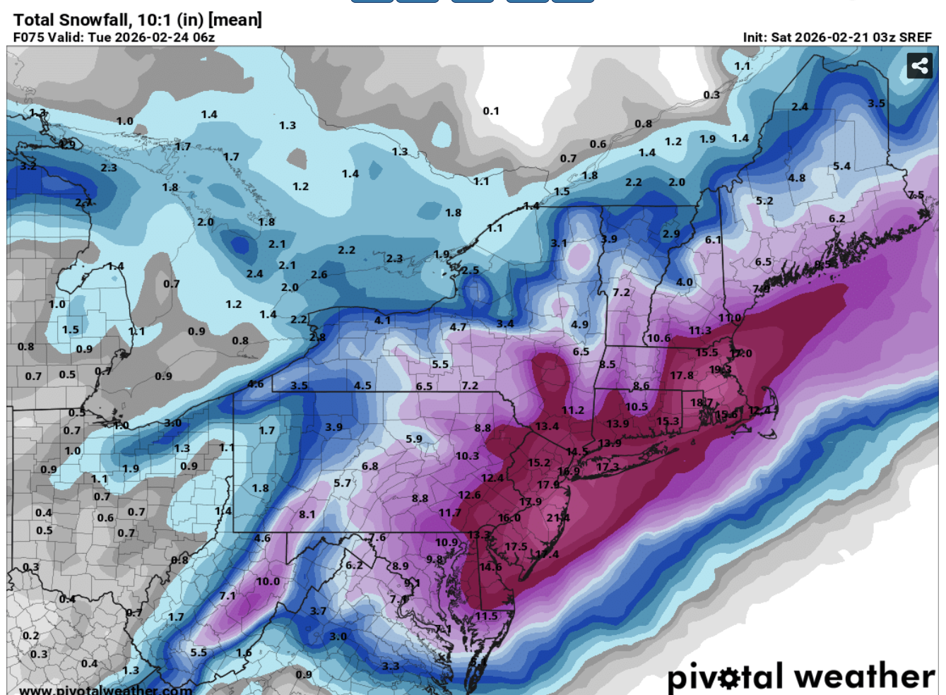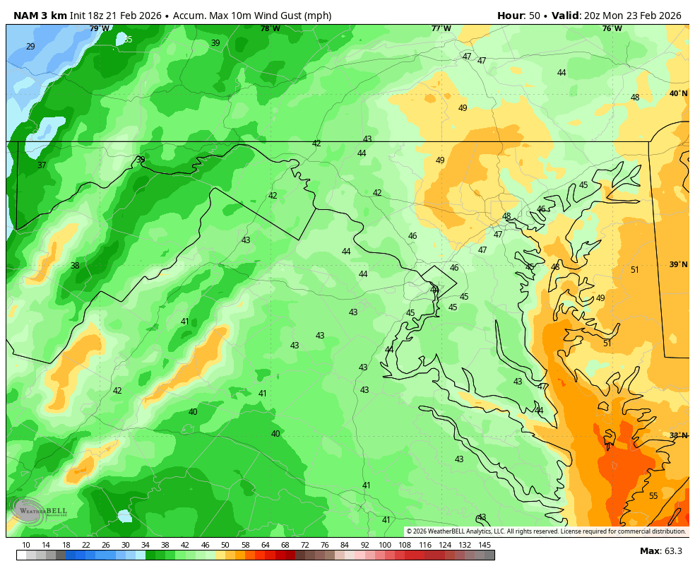 Hot off the presses… LWX pushes watches ever so slightly SW to include bay adjacent counties west of the bay and SE Howard. MOCO and DC left out still. URGENT - WINTER WEATHER MESSAGE National Weather Service Baltimore MD/Washington DC 146 AM EST Sat Feb 21 2026 MDZ014-017-018-506-211500- /O.EXA.KLWX.WS.A.0003.260222T2000Z-260223T1500Z/ Anne Arundel-St. Marys-Calvert-Central and Southeast Howard- 146 AM EST Sat Feb 21 2026 ...WINTER STORM WATCH IN EFFECT FROM SUNDAY AFTERNOON THROUGH MONDAY MORNING... * WHAT...Heavy snow possible. Total snow accumulations of 5 inches or more are possible. Winds could gust as high as 35 mph. * WHERE...Anne Arundel, Central and Southeast Howard, Calvert, and St. Marys Counties. * WHEN...From Sunday afternoon through Monday morning. * IMPACTS...Travel could be very difficult, especially Sunday night into Monday morning. The hazardous conditions could impact the Monday morning commute. PRECAUTIONARY/PREPAREDNESS ACTIONS... Monitor the latest forecasts for updates on this situation. && $$