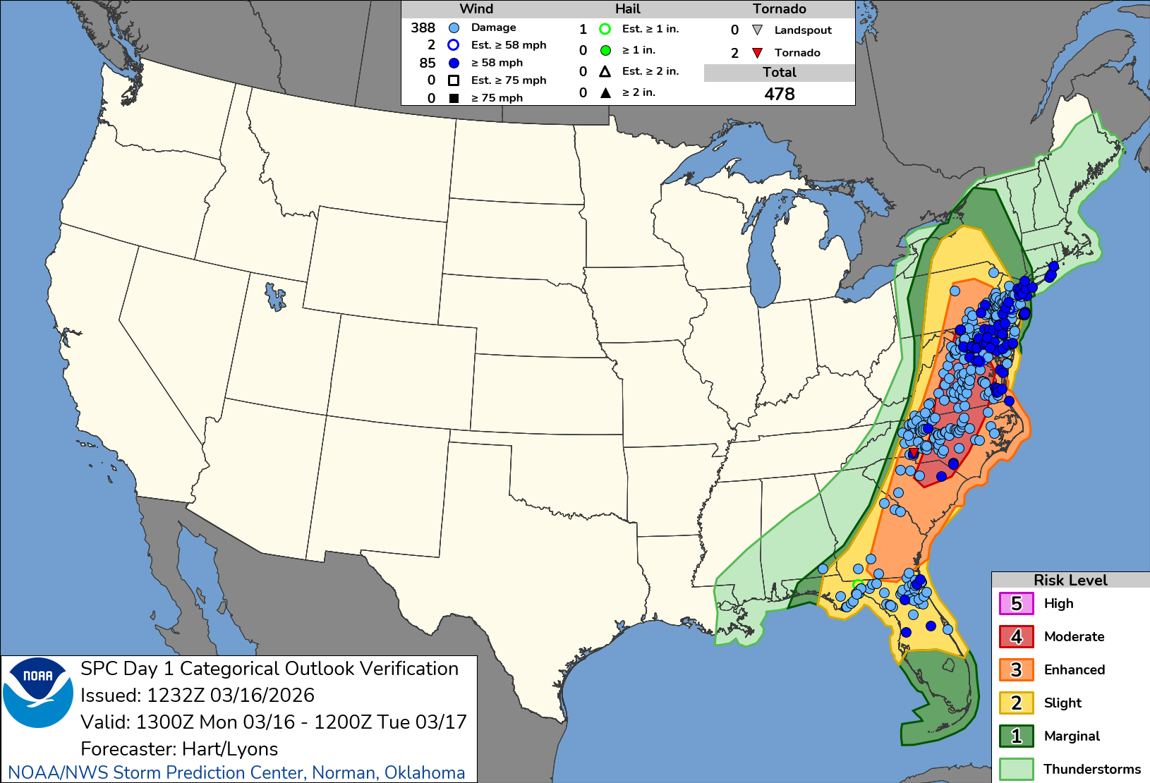 I think this is a fair take for nova and areas that got the final line. However, I’m in central VA and that second line had nothing to work with so for areas around where I was it really was a slight risk in practice. I do think the core of this issue might be the new system. When the SPC issues a 4/5 risk for wind I think it should call for something more than what occurred Monday. While it was a legitimate severe day for parts of the region, I wonder what happens if we get a storm that fulfills a slightly higher risk? Do we say it’s a 5/5 risk? That seems unfair when I think a true 5/5 risk should be a plains deracho with swaths of 90+ mph winds. These 4/5 and 5/5 events should feel rare and exceptional and are labeled as such to spur the public to action.