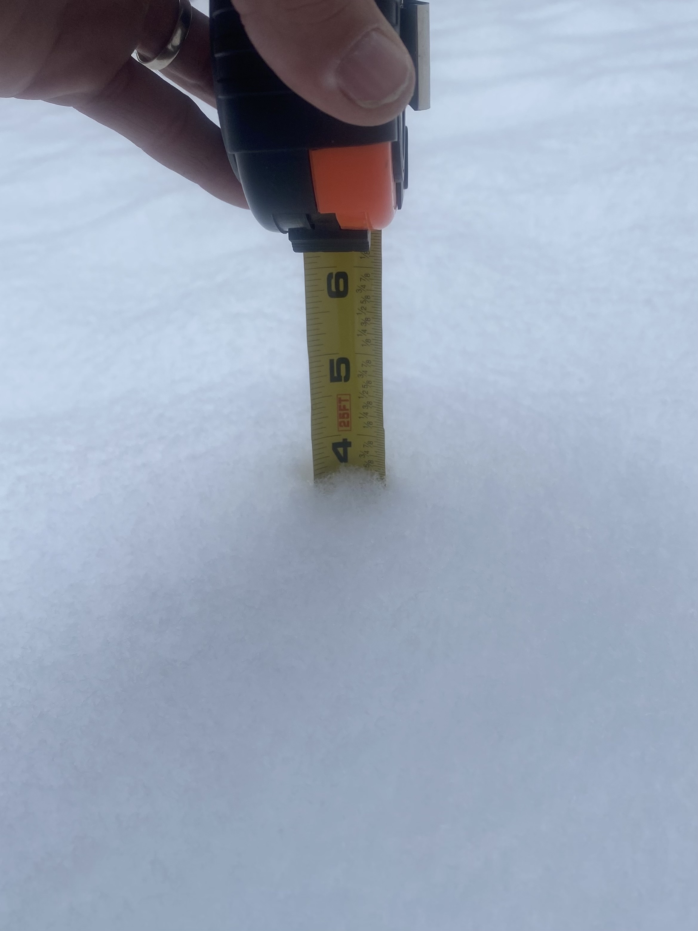 About the same here on the west side. Back to some nice sized flakes falling currently. Pretty along the Miles River.