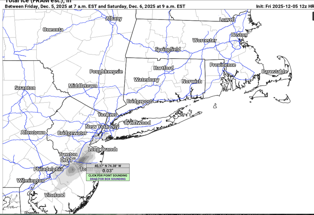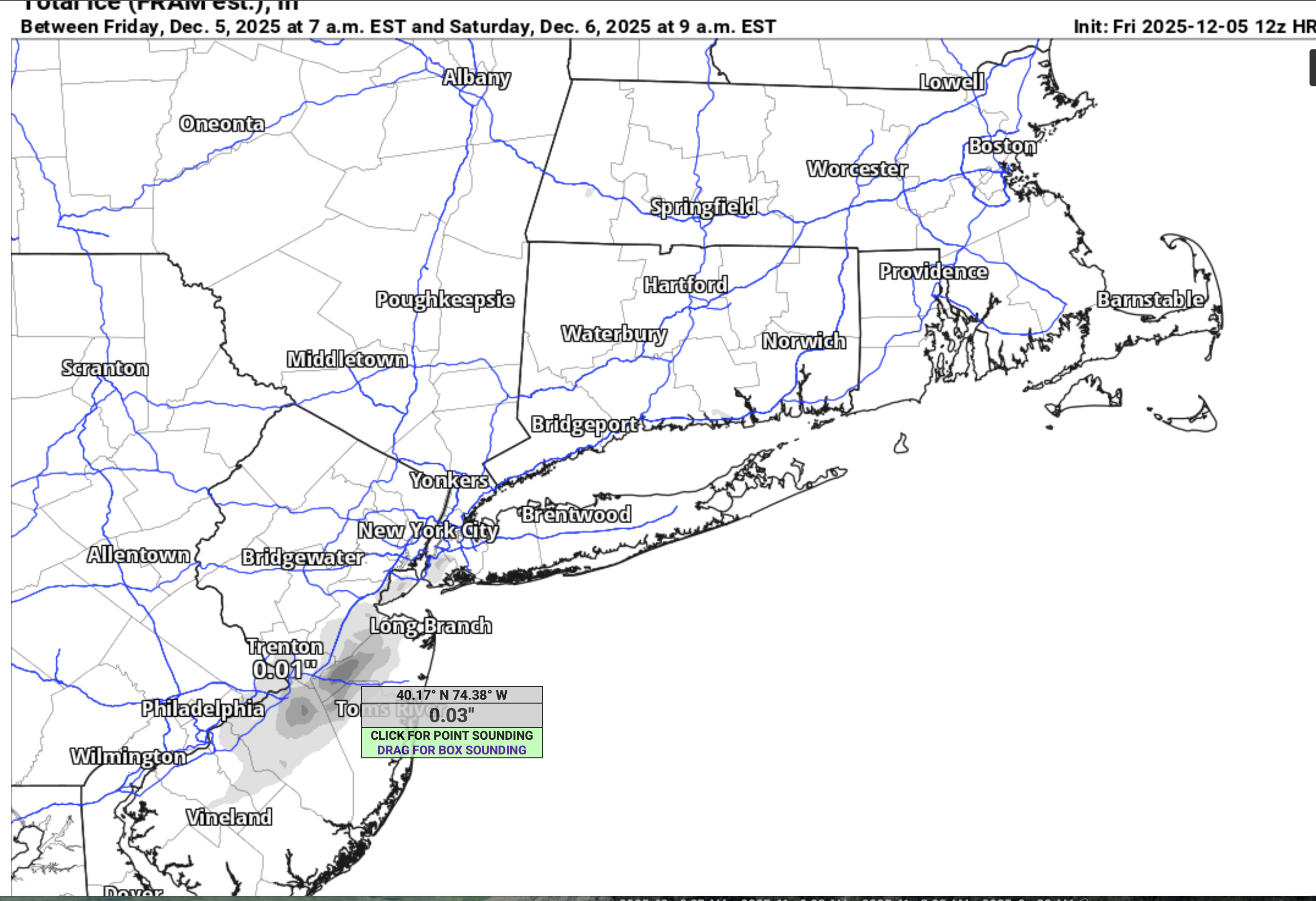 Well, here's your 12z HRRR for tomorrow morning (don't count this mornings snow s of PHL). Will revisit at 5PM for possible first measurable NYC early Sat from the very subtle low level trough.