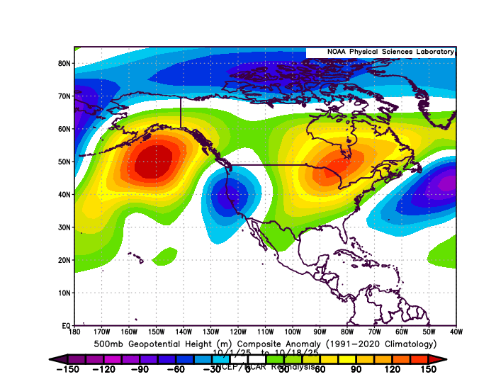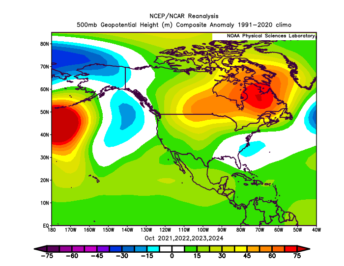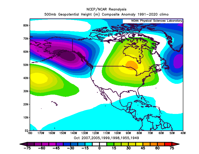 October is interesting because there is a big negative 500mb anomaly over and around Alaska in the -PDO.. and -PDO's when the warm SSTA has been predominant pattern. You would think warmer water temps would be linear with warming somewhere else or there.. but it's a -0.5 H5 correlation that occurs consistently for the last 75 years. -