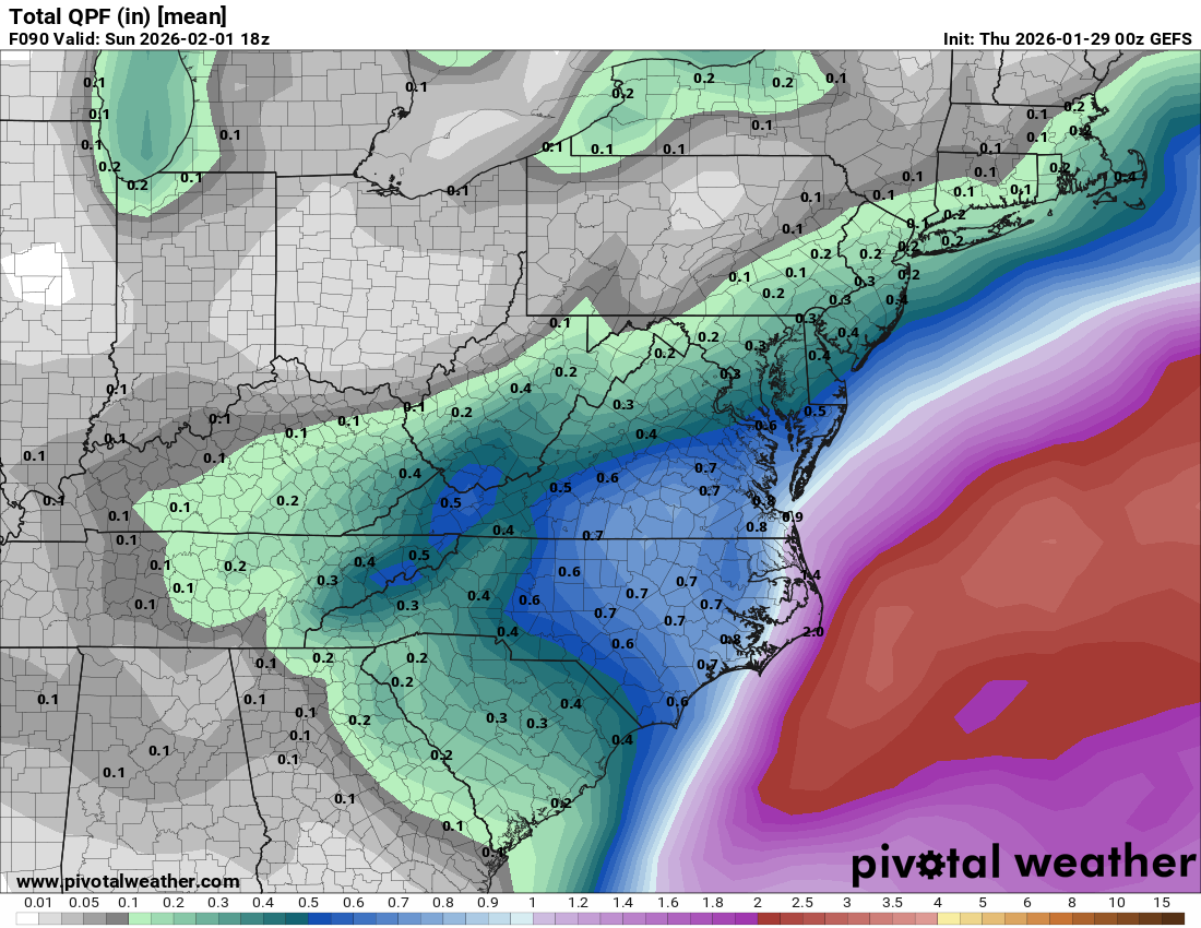 18z EPS SLP plots. Some good agreement on a track about 50 to 75 miles off HAT. Pretty good track for central and eastern NC. -