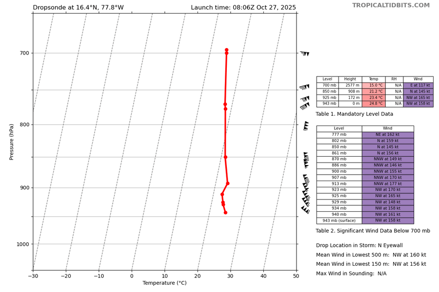 917mb in N/NE quad. Along with the 140kts they measured earlier in the NE quad, Melissa will now be upgraded to a Category 5. Either we get a special advisory or they wait for 5am.