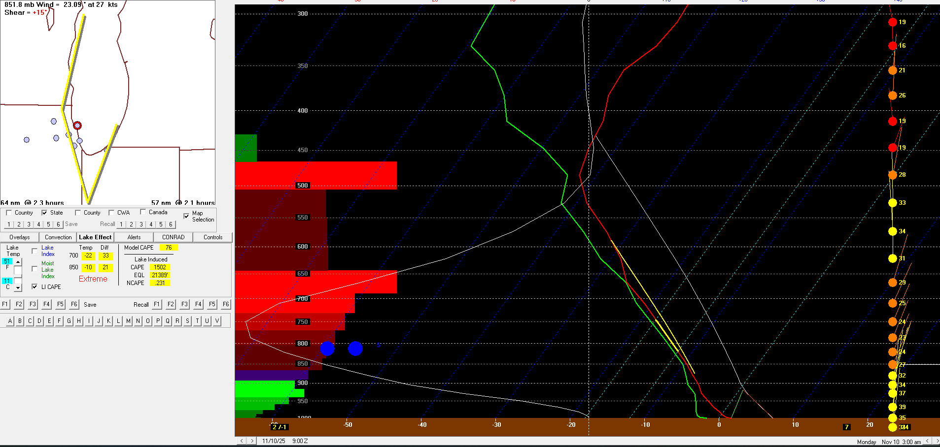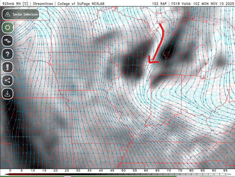 Airmass tonight into tomorrow features H5 temps from -39C to -41C approximately and H85 temps at around -10C. Meanwhile lake temps are in the low 50s, I'm using 51 so using 11C. Pretty impressive lapse rates and given EL levels are approaching 25kft the lake induced CAPE may be near 1500 J/kg on the new HRRR. Values overall are 'extreme' for a few hours for KCGX and LM3 per bufkit. Seems like a fairly decent fetch along the lake, included 925mb RH% and streamlines as a visual. Pretty tremendous omega values co-located with the DGZ will only add the big flakes/aggregates, also seen on the overview image. Likely not as noteworthy given we already have plenty of lake induced CAPE but liking the theta-e contours in the vertical for some weak symmetric stability. Some limiting factors may be subtle low level inversions at times along with moisture depth/saturation throughout the layer. Think another issue may be a bit of directional shear at times will wobble the band enough to limit those high accumulations in a single area. -