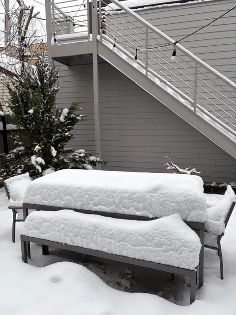 There was much more accumulation already in the Bon Air neighborhood south of Richmond. Back in the city proper, it’s still a heavy coating, and the snowflakes are large in quantity, but very, very tiny otherwise. .